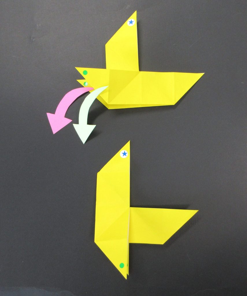 持っている間に左側を下に折ります。目を