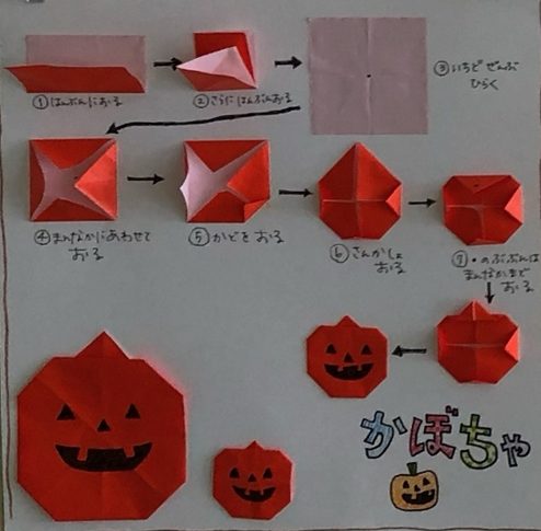 折る順番の見本を作って掲示しています❢