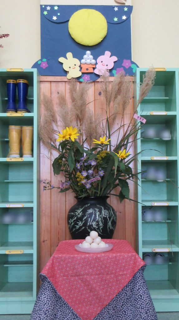 毎年、幼稚園の玄関フロアに十五夜の飾り