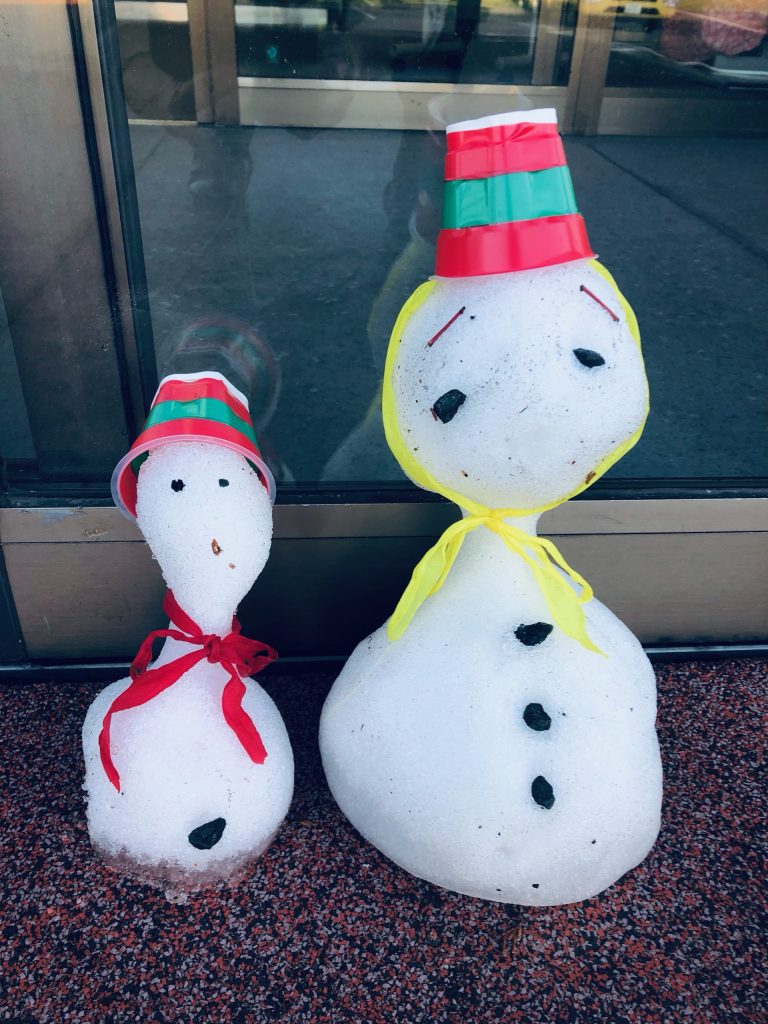 の朝の雪だるまさんが…ずいぶん痩せ細っ