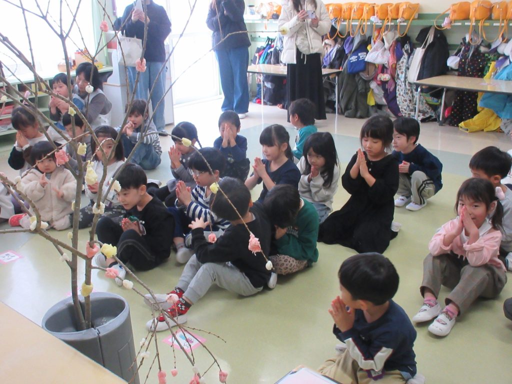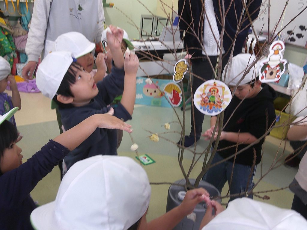 空間を演出~繭玉飾りを囲んでの昼食🥢