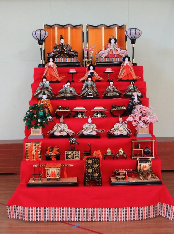 線はお雛様へ👀。七段の大きな雛人形に大