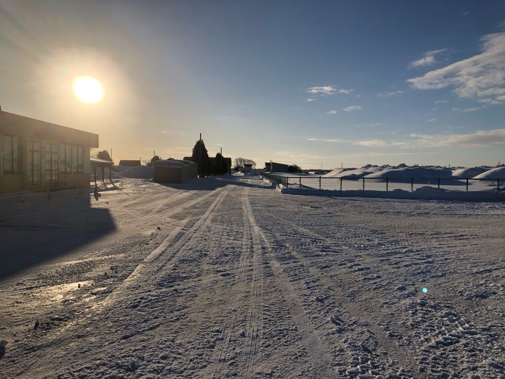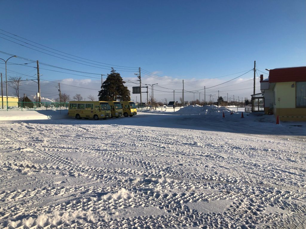 雪が積もると広い駐車場の除雪が必要です。