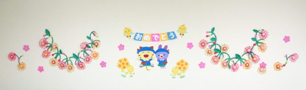 春の飾りで玄関の壁面を一新しました!