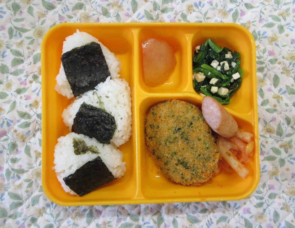 <今日の給食> 塩おにぎり、のり塩コロッケ